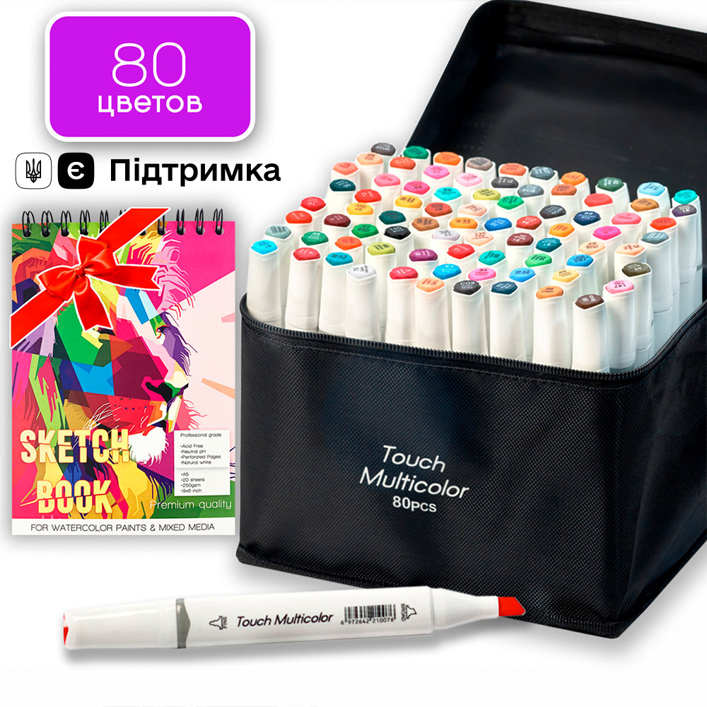 Цей набір найпопулярніший серед художників і фанатів малювання. Спиртові маркери Touch Multicolor для тих, хто захоплюється малюванням і каліграфією, любить створювати комікси і мальовничі ескізи. У наборі представлена різноманітна палітра 80-ти кольорів, яка допоможе відтворювати яскраві і привабливі малюнки.